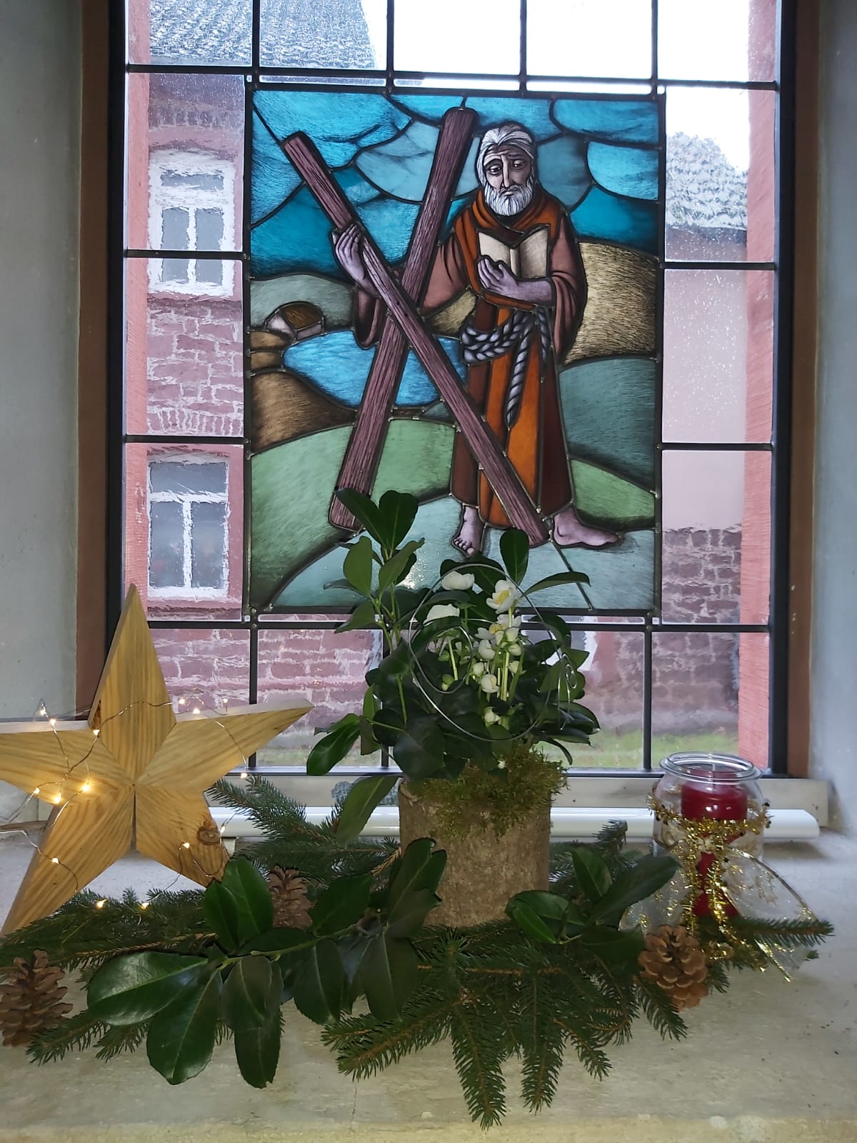 Christrosen, gespendet von einem Gemeindemitglied, dazu Kreativität und Gestaltungsfreude einer Kirchenvorsteherin - so wurden in diesem Jahr auch unsere Kirchenfenster festlich geschmückt.