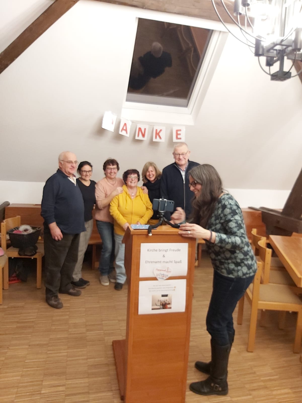 In gemütlicher Runde trafen sich die hauptamtlichen und ehrenamtlichen Mitarbeiter der Kirchengemeinde. Nach einer kurzen Begrüßung und einem Lied konnte sich jeder ausgiebig am Buffet stärken und aus seiner jeweiligen Gruppe berichten. Ein Quiz über die vielfältigen Aktionen im Jahr 2019 schloss sich ebenso an wie die Präsentation der neuen Homepage. Zum Schluss durfte jede Gruppe in der selbst eingerichteten Handy-Foto-Fun-Box ein Erinnerungsbild schießen.