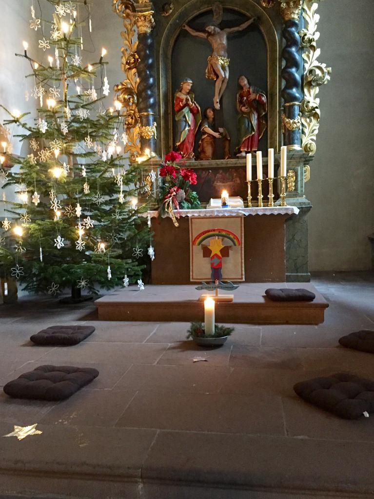 Die Verlegung aus der Pfarrscheune in die Kirche, ursprünglich nötig geworden durch den Umbau des Gemeindezentrums, hat sich als Segen erwiesen. Jeder findet einen Platz, die Organisation konnte vereinfacht werden und ein Gottesdienst in der großen Kirche ist auch für die Kleinen etwas Besonderes.