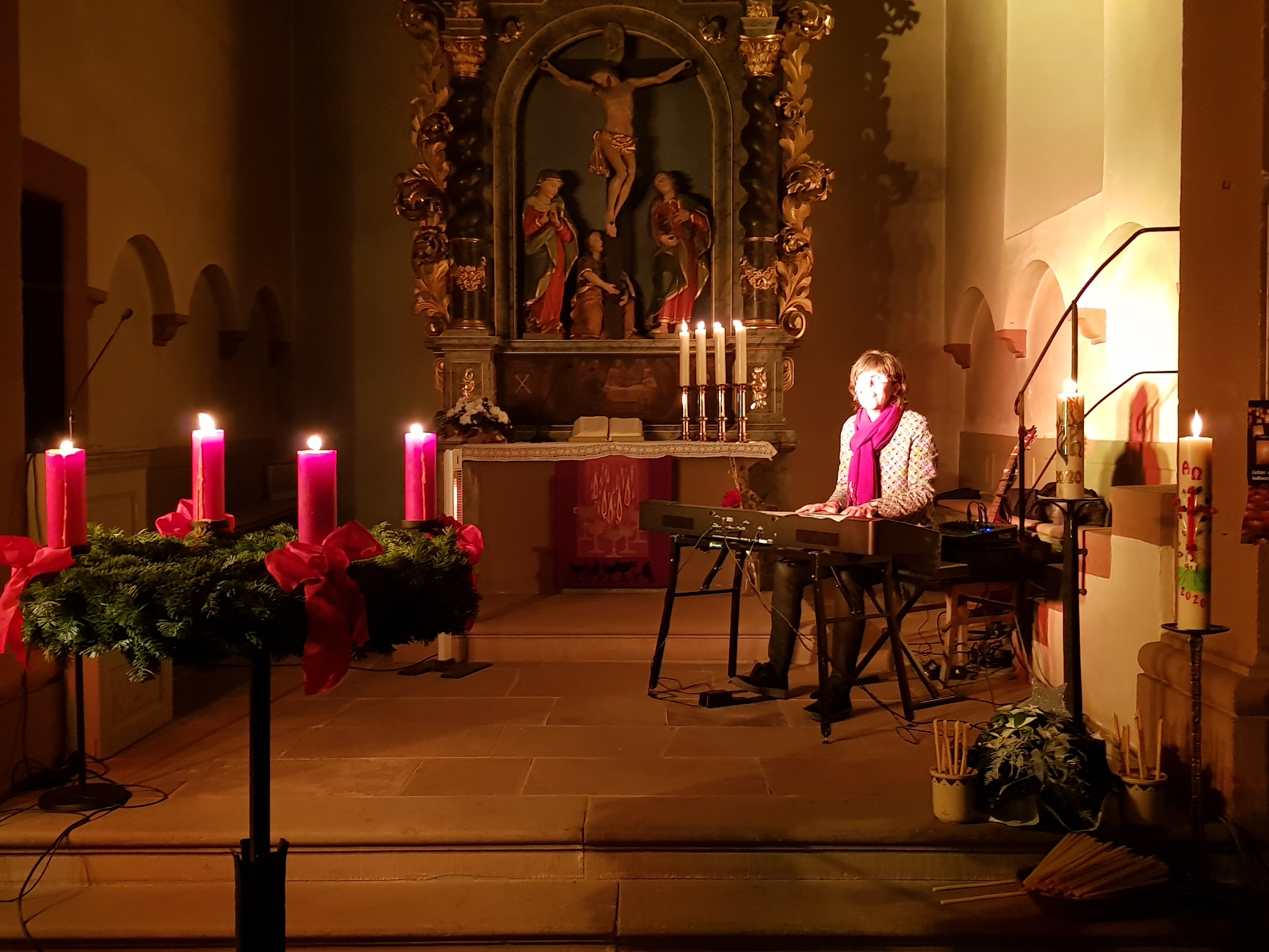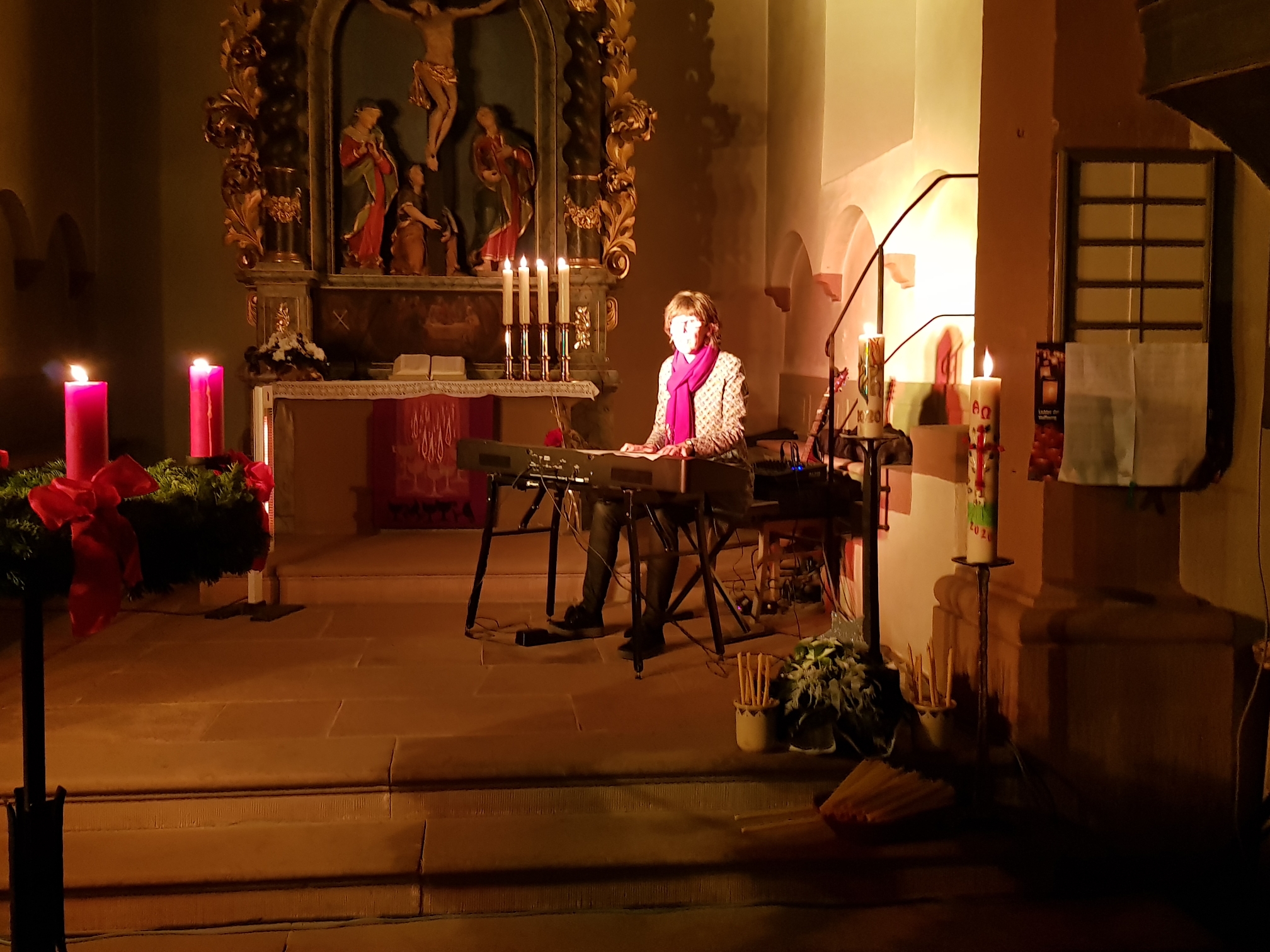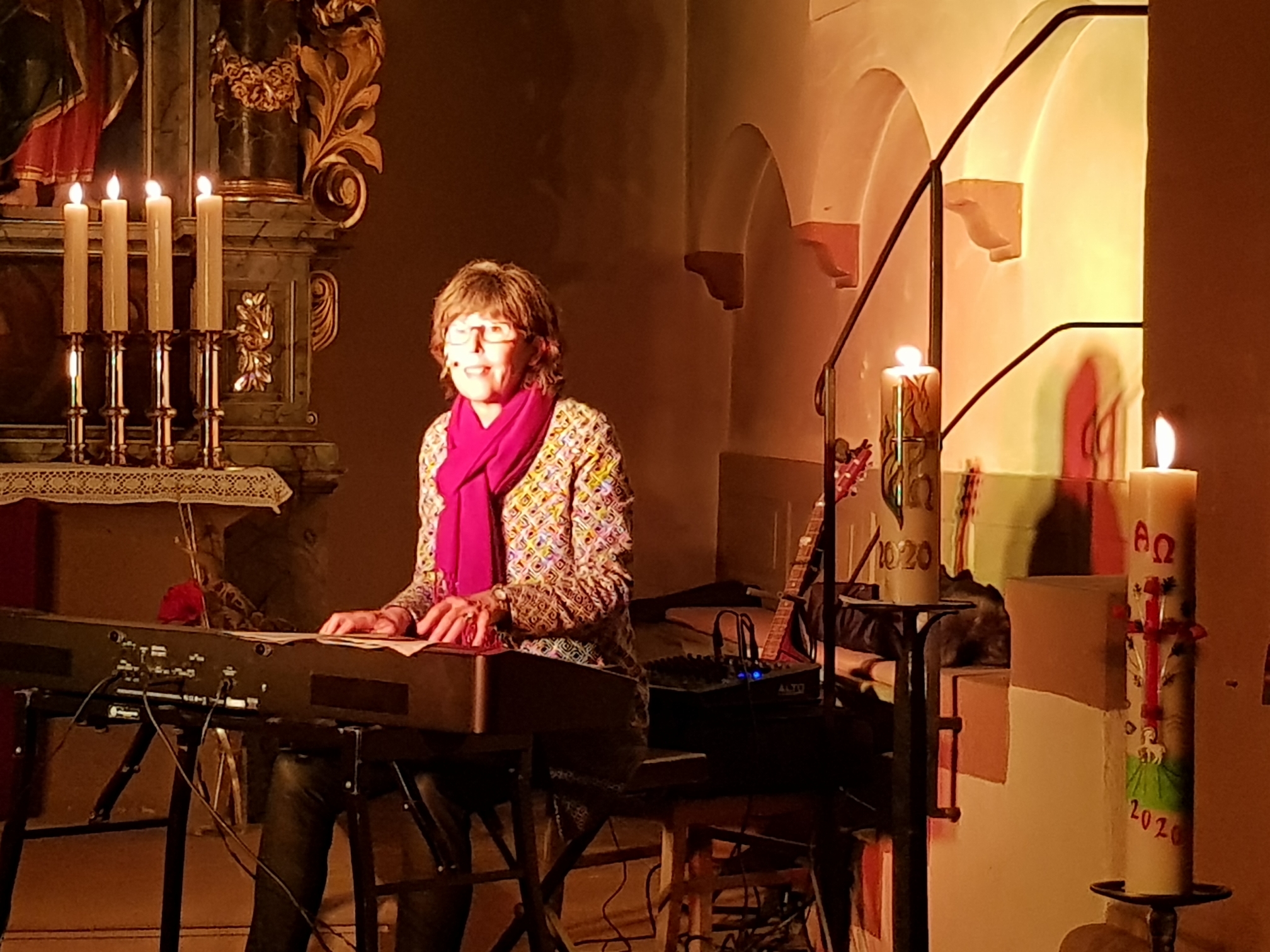 Stefanie Schwab hat als singende Seelsorgerin auf ihre Weise dafür gesorgt, dass ihr Publikum das findet, was Menschen immer wieder suchen: Trost und Halt, Vertrauen, Ruhe, Mut, Hoffnung, Inspiration, Begleitung und Verbundenheit. Die St. Andreas Kirche war, auch dank der stimmungsvollen Dekoration, in ein warmes Licht getaucht und alle konnten spüren, dass wir auch in Zeiten von Abstandhalten und Kontaktbeschränkung nicht alleine sind, sondern getragen sind von der Liebe Gottes.