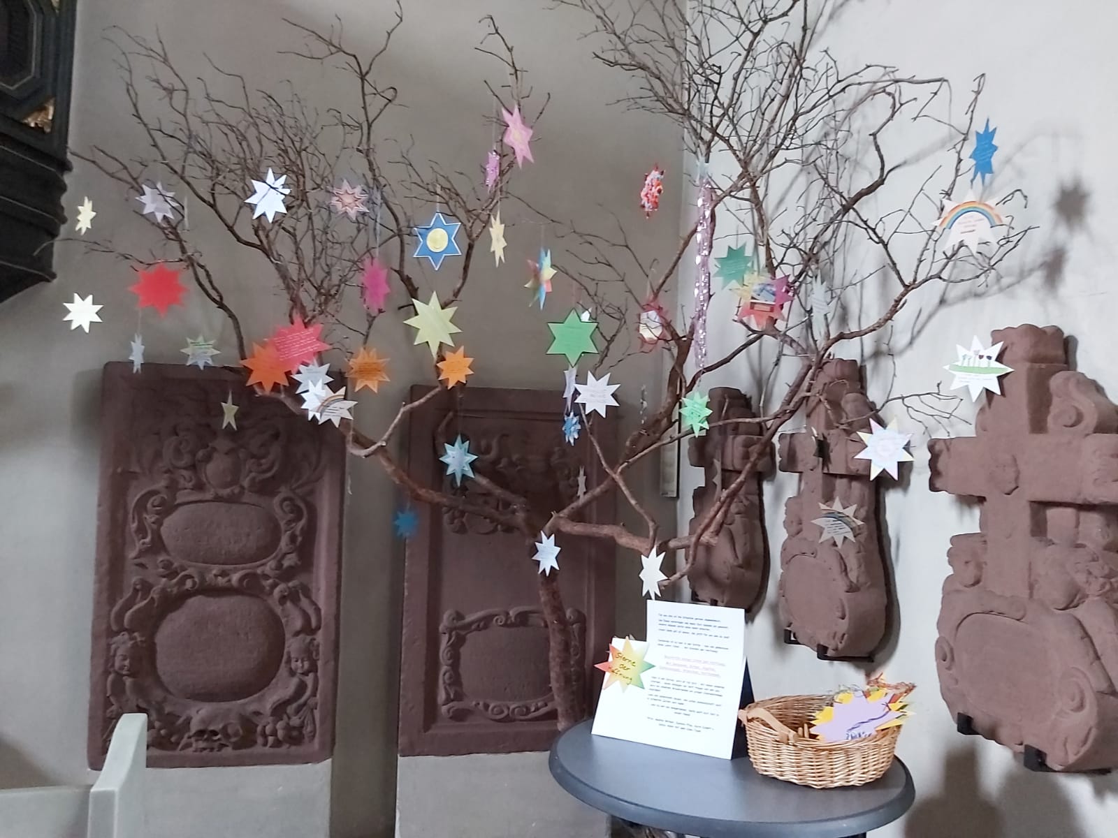 Derweilen ist es leer …. in der Kirche, im Kindergarten, in der Pfarrscheune, im Gemeindesaal. Lasst uns gemeinsam diese Leere füllen …. mit Sternen der Hoffnung! Deine Sterne der Hoffnung: